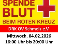 Die nächste Blutspende des DRK Schmelz findet am Mittwoch, 4. Februar 2026 von 16-20 Uhr in der Kettelerschule Schmelz statt! Für die Spende können Sie sich online einen Termin reservieren: www.blutspendedienst-west.de/blutspendetermine. Für das leibliche Wohl ist, wie immer, gesorgt! Der DRK Ortsverein Schmelz bedankt sich schon jetzt bei allen freiwilligen